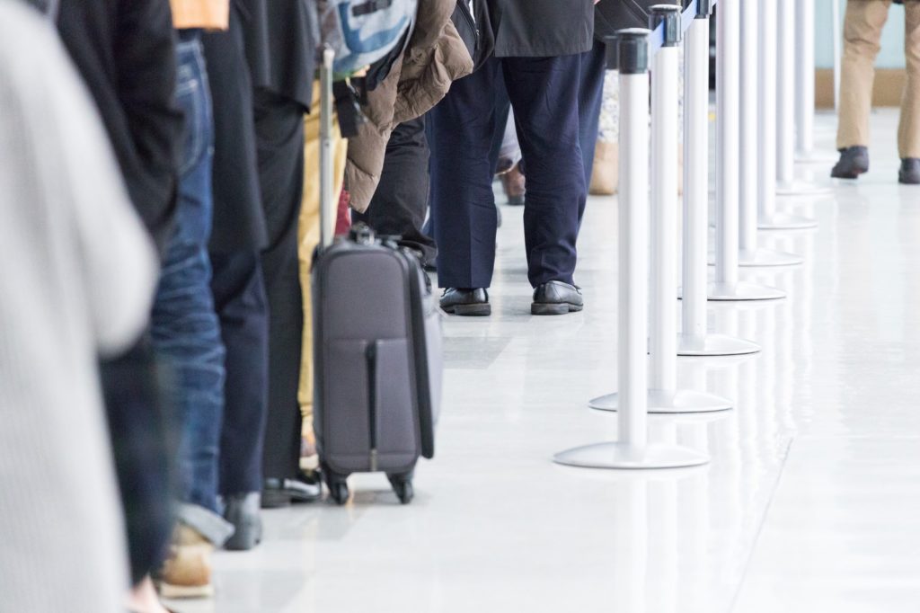 搭乗口まで長い列ができていた。